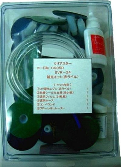 クリーニング作業後、レジン液圧入前に粘着シール・台座をセ ットし、 各レジン液を注入、インジェクター ポンプ をつなぎます。